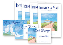 This package enables you to host your own List Party with a group of single friends or family members, and encourage your loved ones to start their personal journey to Identify a Mate. 4 books and invites for 3 guests are included. Click here for package detail. |
